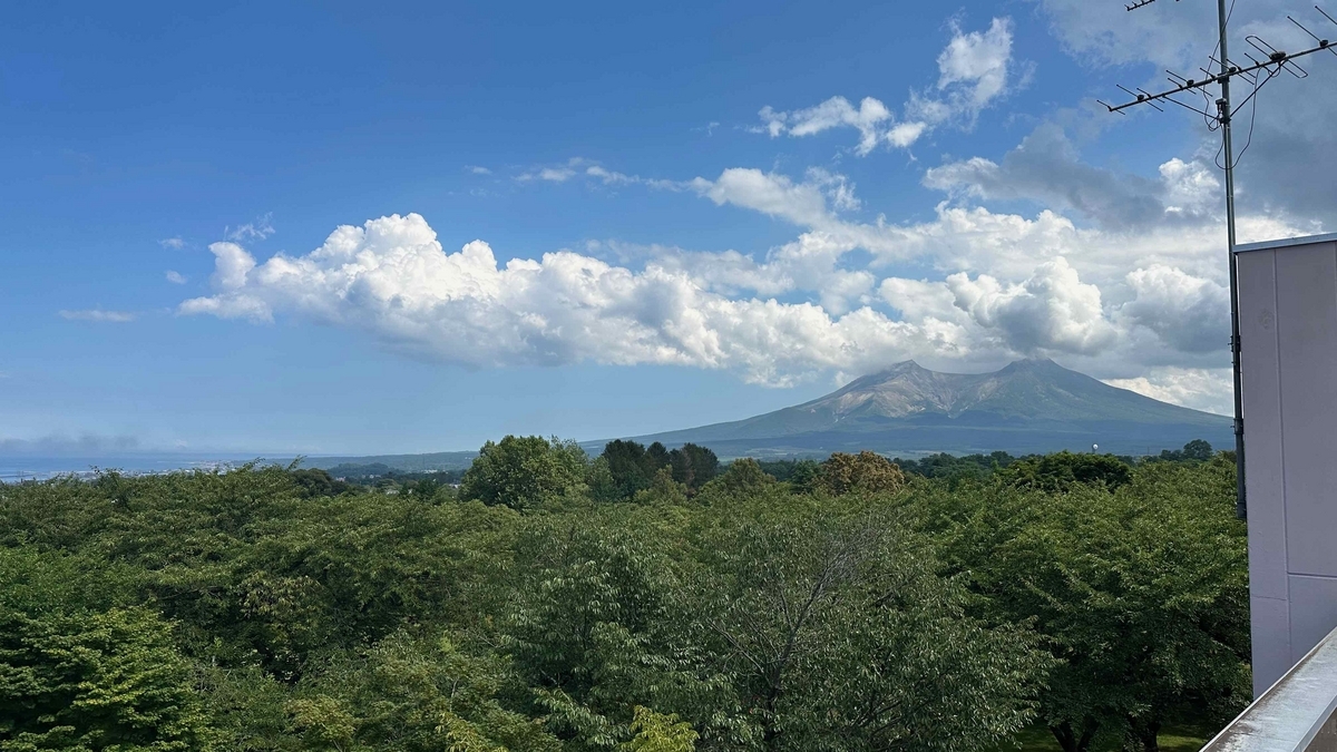 眼の前に駒ケ岳。森の道の駅の展望から。あまり盛夏に来た記憶もなく(そんなこともないのだけど)ここまで山が見えたのは初めてだったと思う。だから、駒ケ岳ってこんな山なんだって初めて知った。