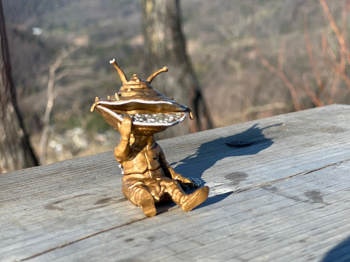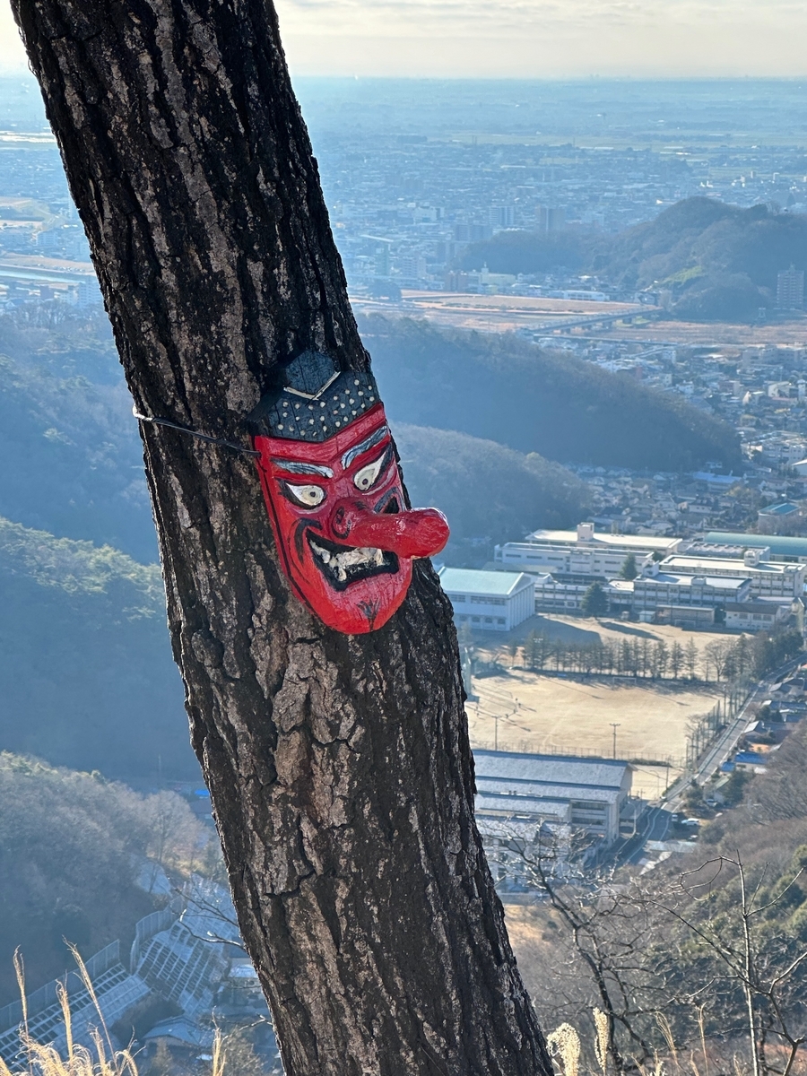 ここだけでもこっちのルートの方が良い。織姫神社の階段結構急だし、長い。鏡山に入るところまでが車道が出てきたりするから、そこまでが結構長く感じてたけど、階段もそんなに段数があるわけでもないし、そこまで急ではない上りで観音山に到着する。